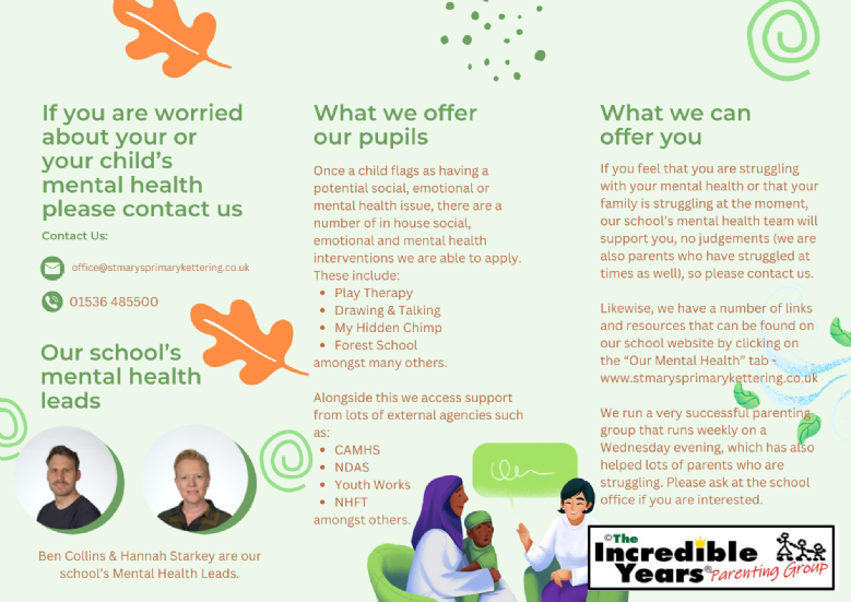 We have two school Mental Health Leads, who have been specially trained for their role within the school.